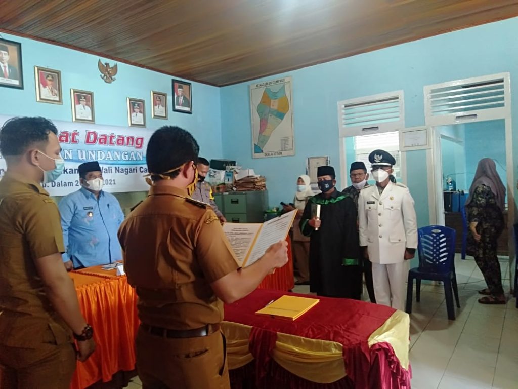 PARIAMAN- Bupati Padang Pariaman Suhatri Bur, SE,MM, menghadiri pelantikan Budi Halim Perdana selaku Pj Wali Nagari Campago oleh Camat V...