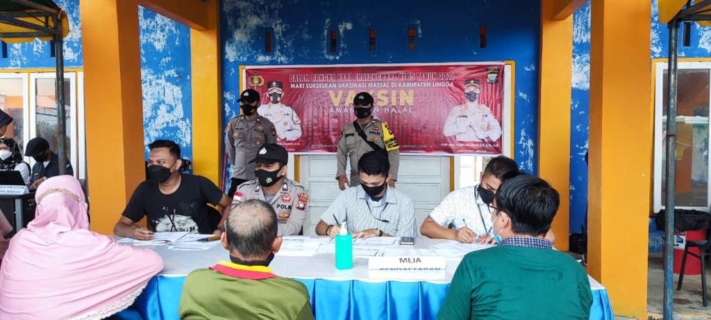 LINGGA - Polsek Dabo Singkep, jajaran Polres Lingga menggelar vaksinasi Covid-19 massal dalam rangka menyambut Hari Bhayangkara ke-75, 1 Juli...