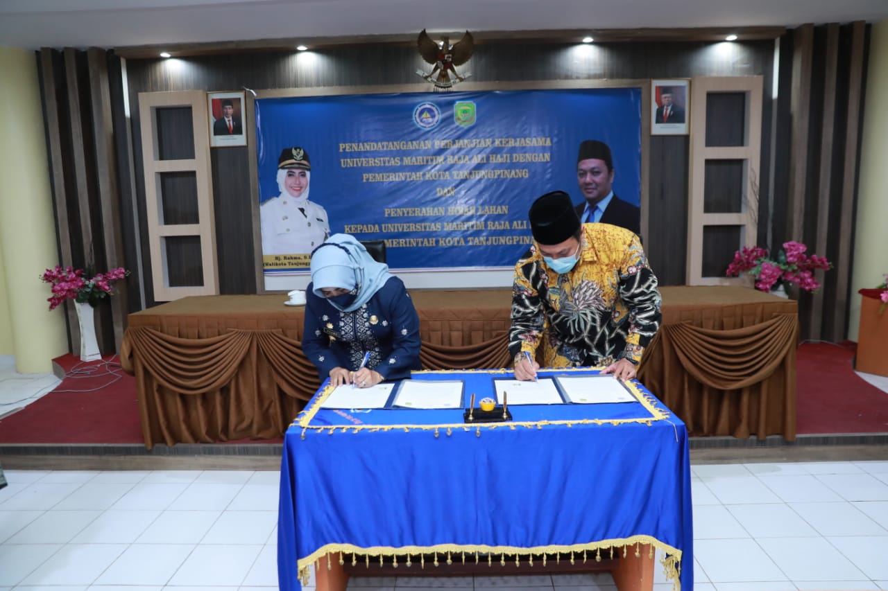 TANJUNGPINANG – Legalitas tanah kampus Universitas Maritim Raja Ali Haji (UMRAH) yang berada di Senggarang kini sudah jelas. Pemerintah Kota Tanjungpinang telah menghibahkan tanah seluas 6,6 hektare kepada pihak UMRAH yang ditandai dengan penandatanganan naskah serah terima antara Walikota Tanjungpinang bersama Rektor UMRAH, Rabu (30/9) di Kantor Rektorat UMRAH, Dompak.