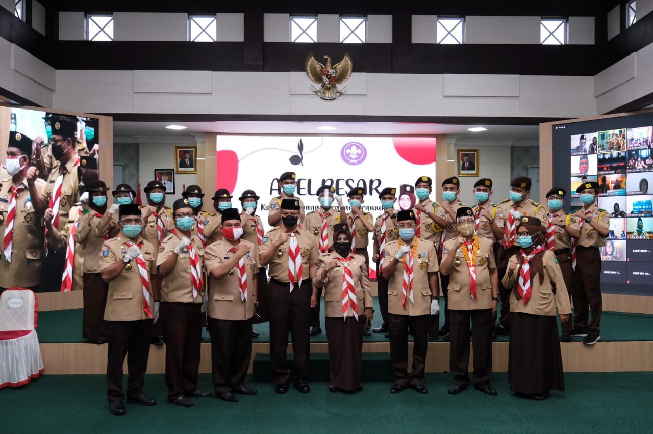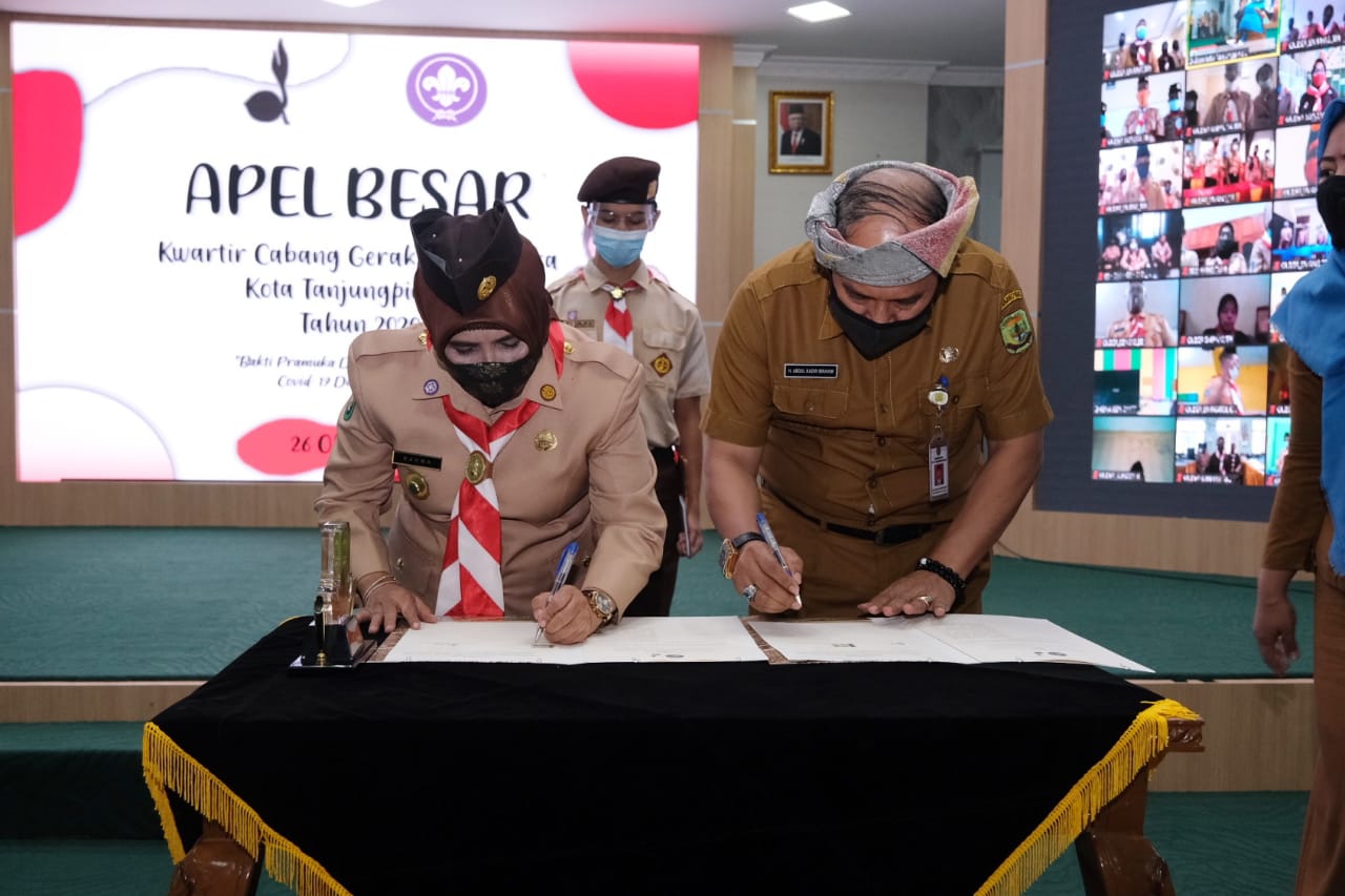 TANJUNGPINANG – Walikota Tanjungpinang Hj. Rahma, S. IP menjadi pembina Upacara pada pelaksanaan apel besar gerakan pramuka kwartir cabang Kota Tanjungpinang yang dilaksanakan secara virtual di Aula Sultan Sulaiman Badrul Alamsyah, Senin (26/10).