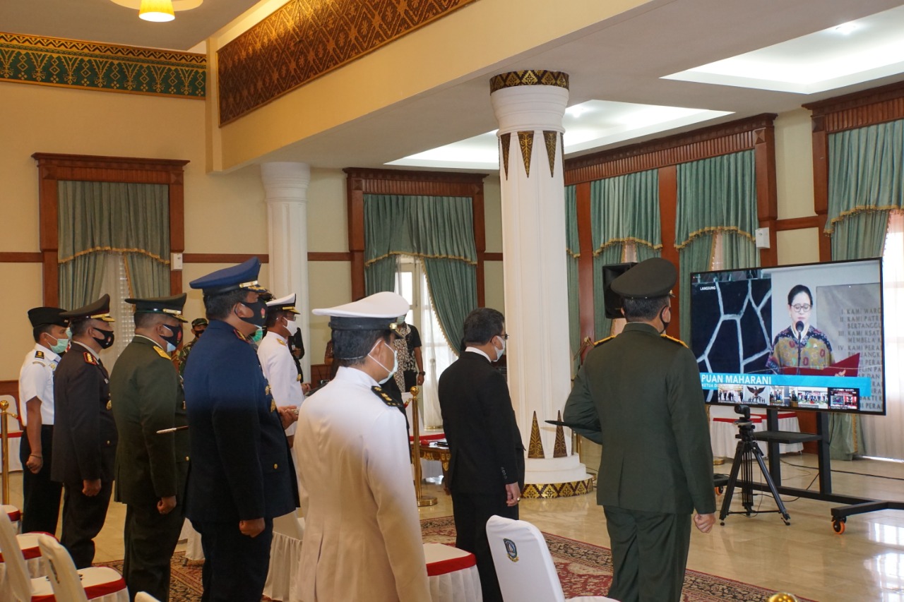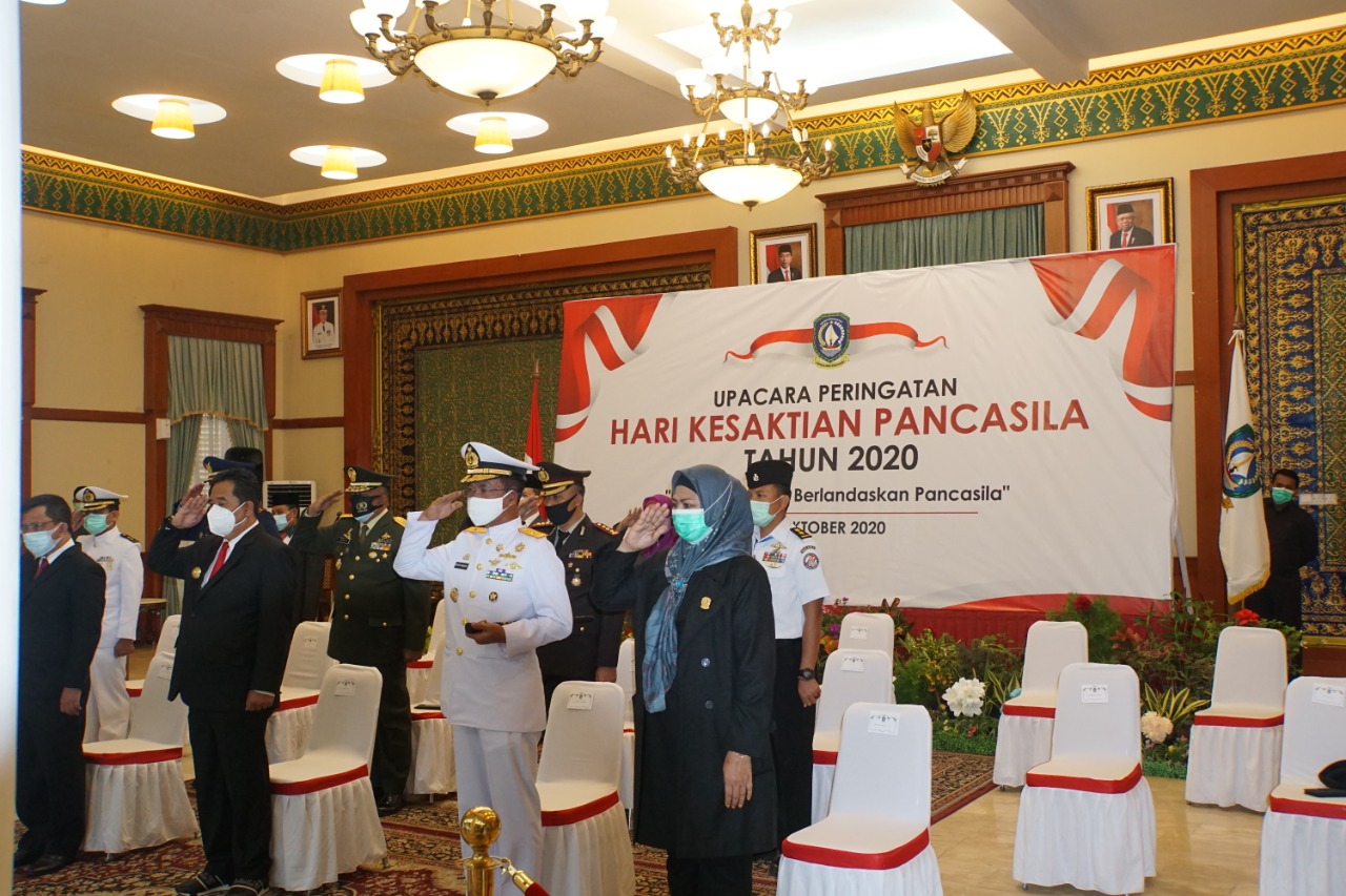 TANJUNGPINANG – Komandan Pangkalan Utama TNI Angkatan Laut (Danlantamal) IV Tanjugpinang Laksamana Pertama TNI Indarto Budiarto, S.E., M.Han., bersama Pjs Gubernur Provinsi Kepri Bahtiar dan FKPD Provinsi Kepri hadiri upacara secara virtual Peringatan Hari Kesaktian Pancasila yang berlangsung di Gedung Daerah Jl. S.M. Amin No 1 Tanjungpinang Kepulauan Riau, Kamis pagi (01/10).